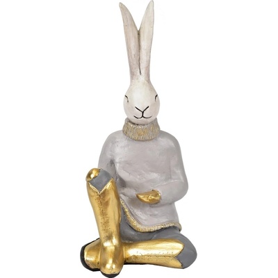 Dekorace do moderního interiéru - zajíc s vajíčkem. Materiál: polyresin Rozměry: výška 39 cm šířka 18 cm hloubka 18 cm