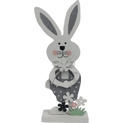 Dekorační zajíc Rozměry : 9 × 4,5 cm, výška 23 cm Barva : kombinace bílá, šedá Materiál na bázi dřeva