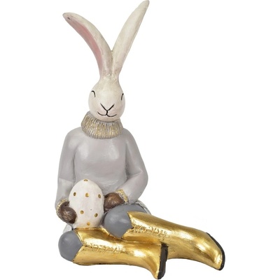 Dekorace do moderního interiéru - zajíc s vajíčkem. Materiál: polyresin Rozměry: výška 37 cm šířka 25 cm hloubka 20 cm