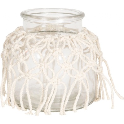 Skleněná dekorativní váza s provázky bude zajímavou ozdobou na vašem stolku nebo na polici. Umístíte do ní suchou vazbu nebo kytičky z louky či zahrádky.