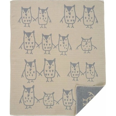 Dětská deka Hand in Hand Greige od švédské značky Klippan v sobě spojuje klid, hebkost a poetický design. Autorka Bitte Stenström na ní zachytila sovičky, které se tu a tam drží...