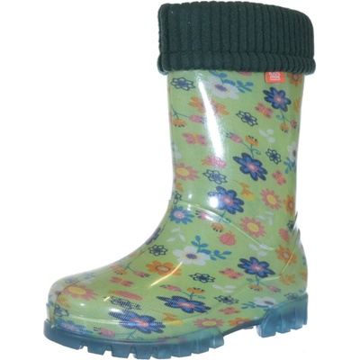 Kvalitní a odolná obuv do deště s měkkou hřejivou vložkou, ve kterých zůstanou dětské nožky v teple a suchu. Vyjímatelnou vložku lze prát v běžných pracích prostředcích při teplotě do 40°C. BARVA JE VE SKUTEČNOSTI VÍCE DO ZELENA.