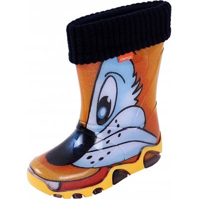 Popis produktu Dětské zateplené holínky demar STORMER LUX PRINT jsou ideální pro deštivé letní a podzimní počasí. Barva holínek je oranžová imitující kočku. Mají hrubší...