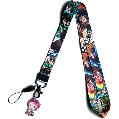 Klíčenka s karabinou na krk. Potisk po celé ploše. Stylový doplněk pro fandy Demon Slayer (Kimetsu No Yaiba).