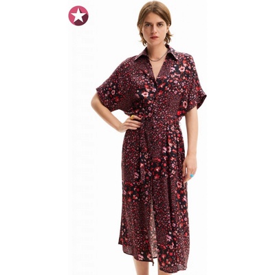 Květinové dámské šaty Delaware od značky Desigual. Ideální šaty na nošení od podzimu do Jara. dámské květinové šaty long fit výstřih do V ozdobné knoflíky jemné žebrování dlouhý...