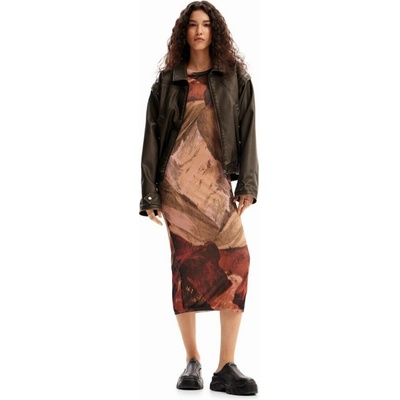 Přiléhavé midi šaty s dlouhými rukávy z jemného úpletu s leskem a potiskem krajiny. Svrchní materiál87% viskóza 13% polyesterVnitřní materiál92% polyester 8% elastan
