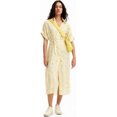 Midi šaty s krátkým rukávem na knoflíky, s páskem a patchwork květinovým potiskem. Materiál100% viskóza