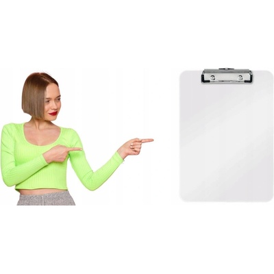 Praktická psací podložka s pevným klipem a očkem pro zavěšení na stěnu. Materiál: PVC a karton (2 mm). Klip s kapacitou až 50 listů papíru (70 g/m2). Na delší straně umístěno...