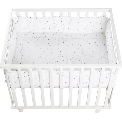 Ohrádka roba "Sternenzauber grau" v bílé barvě nabízí stabilní plochu na hraní a mazlení o rozměrech 75 x 100 cm a je vybavena měkce polstrovanou prošívanou vložkou z šedé...