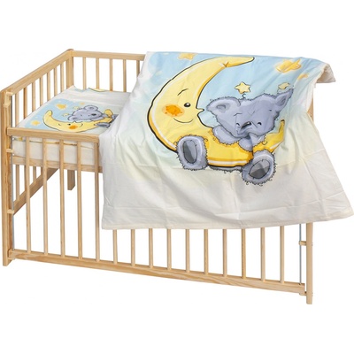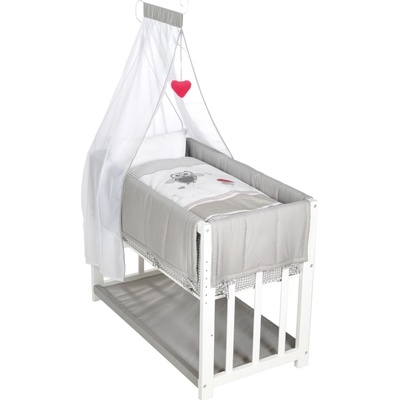 Dětská postýlka s kompletní soupravou povlečení a doplňků Scarlett MimasKomplet obsahuje1. Dětská dřevěná postýlka 120x60 cm - bílá, masiv buk, 3 vyndavací příčky, 3 polohy...