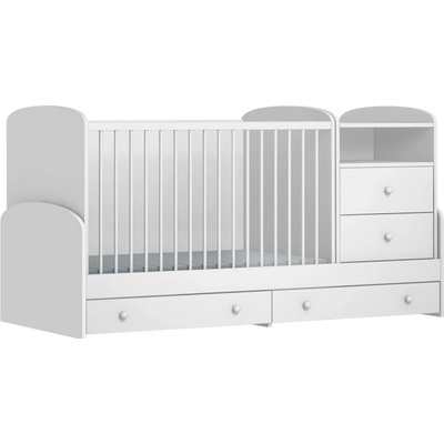 I když se na první pohled zdá být kombi postel robustní, opak je pravdou. Vždyť na 2 metrech máte vše, co jindy zabírá mnohem více prostoru – postýlku i přebalovací komodu....