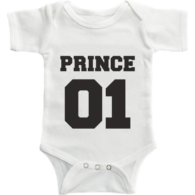 Roztomilé dětské BODY pro chlapečka s potiskem PRINCE 01. Na výběr v černém i bílém provedení a 4 barvy potisku. - Rozměry dětských BODY BODY délka šířka 3 měsíce 36 cm 19...
