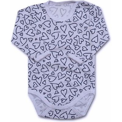 Bavlněné body s dlouhým rukávem Srdce bílé bobynko je vyrobené z příjemné jemné bavlny, zapínání na ramínku i mezi nožičkami na baby druky. Body s obrázky černých srdíček na...