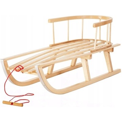 Dětské dřevěné sáňky s opěrkou Kvalitní dětské sáňky z bukového dřeva. Sáňky jsou doplněny o zádovou opěrku s ohrádkou pro možnost bezpečného použití i pro nejmenší děti. Ohrádku je možné demontovat. Šňůrka je součástí sáněk. Rozměry: 88 x 37 cm Maximální nosnost: 50...