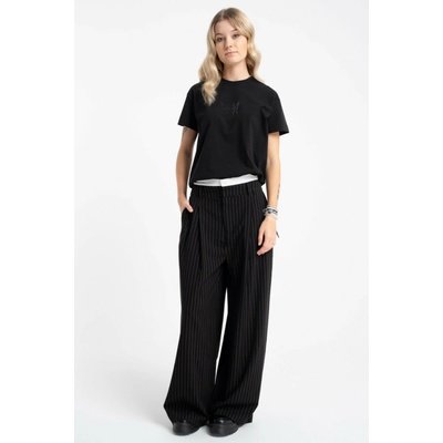 Černé žebrované kalhoty WIDE LEG, zapínané na zip volný střih WIDE LEG, široké nohavice, boční všité kapsy, zapínání na zip, pas na knoflík, poutka v pase pro možnost nošení...