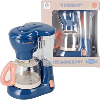 Modro-bílý plastový kávovar s hrníčkem a podšálkem pro děti, pro všechny malé pomocníky v domácnosti. Připravit překapávanou kávu už nebude žádný problém. Lze nalít vodu pro efekt překapávání. Reálné zvuky a funkce. Hračka na baterie, se světlem. Baleno v krabici....