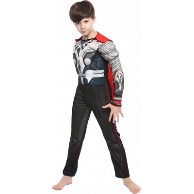 Dětský kostým Thor Deluxe skládající se z komplikovaně natištěného svalového overalu s připojenými botami a manžetami na ruce. Rozměry M/L délka k patě 108/128, rozkrok 50/61,...