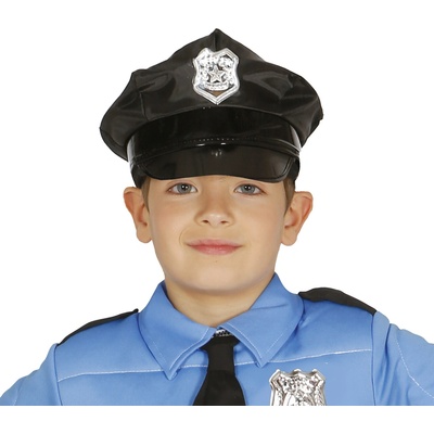 Policejní čepice, nastavitelná s policejním znakem. Obvod hlavy: dětská univerzální velikost Materiál: 77% polyester, 20% polyurethane, 3% železo