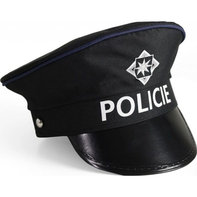 Policejní čepice, nastavitelná s policejním znakem. Obvod hlavy: univerzální velikost Materiál: 77% polyester, 20% polyurethane, 3% železo