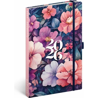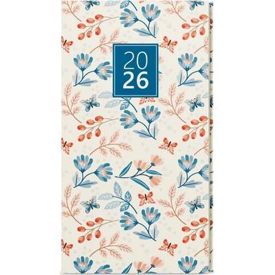 Plánovací diář kapesní velikosti na rok 2026. Na levé straně jsou dny v týdnu a na pravé linkovaná stránka na poznámky. Diář má pevnou vazbu v kartonových deskách. Obepíná ho...