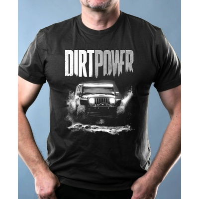 Dirt power, 4X4, bílý tisk. Pro ty, kteří se nebojí zašpinit! Terénní vůz ve víru bláta a hlíny je symbolem síly, odolnosti a nekonečného dobrodružství, které zvládne jen pohon...
