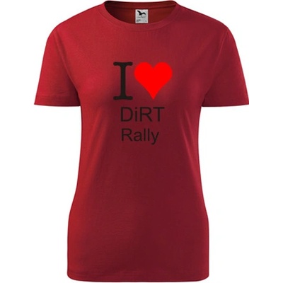 Červené dámské tričko I love DiRT Rally. nabízené velikosti jsou S,M,L,XL,XXL. Tričko je zařazeno v sekcích Trička I love závodní hry - dámská, Dárky pro hráčky počítačových...