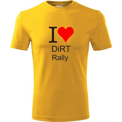 Žluté tričko I love DiRT Rally. nabízené velikosti jsou S,M,L,XL,XXL,XXXL. Tričko je zařazeno v sekcích Trička I love závodní hry - pánská, Dárky pro hráče počítačových her,...