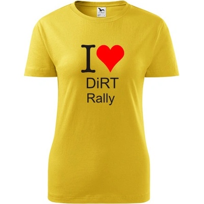 Žluté dámské tričko I love DiRT Rally. nabízené velikosti jsou S,M,L,XL,XXL. Výběr z 12ti barev. Tričko patří do kategorií Trička I love závodní hry - dámská, Dárek pro hráčky...