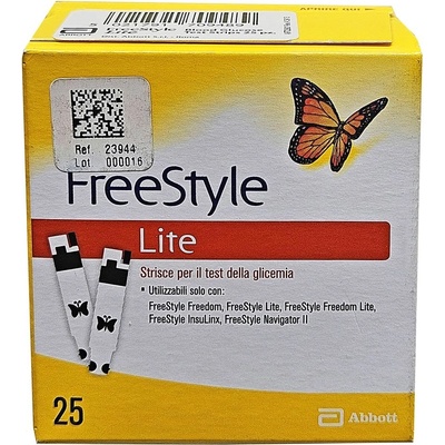 Nové testovací proužky FREESTYLE LITE v ekonomickém balení 25 kusů pro měření glykémie (cukru v krvi). Jedinečnost testovacích proužků spočívá v unikátním tvaru proužku s...