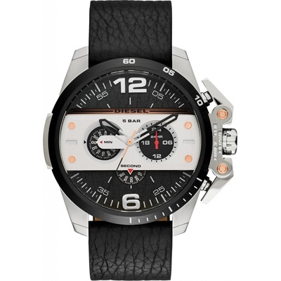 Diesel DZ4361 ZÁKLADNÍ PARAMETRY: Určení: Pánské Pouzdro:Z ušlechtilé oceli Řemínek:Kožený Sklo:Tvrzené minerální Ciferník:Černý a bílý Vodotěsnost:5atm šířka ciferníku: 48 mm výška ciferníku: 13 mm FUNKCE: Stopky Čas: analogové zobrazení Napájení QUARTZ: životnost...