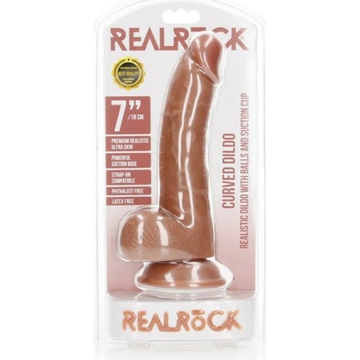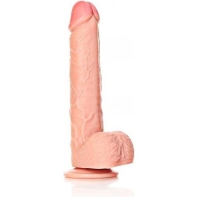 Shots RealRock Curved 10" Realistic Dildo Balls Suction Cup Flesh - tělové realistické dildo vyrobené z měkčeného PVC z kolekce Real Rock. Velmi realistické, do detailů...