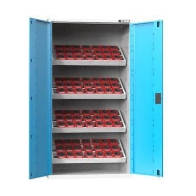 Skříň na uskladnění chemikálií s vaničkami na zachycení kapalin. Skříň je vybavena 2 přestavitelnými policemi ve tvaru vaničky. Výška 1000 x šířka 500 x hloubka 422 mm, nosnost...