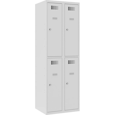 Čtyřdveřová šatní kovová skříňka se svařovanou konstrukcí a moderním designem ventilačního systému. Výška 1800 x šířka 600 x hloubka 500 mm. Standardní vybavení: tyč s háčky,...