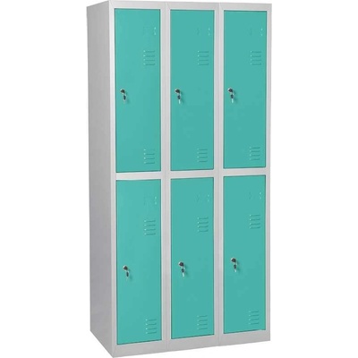 Šestidveřová šatní kovová skříňka se svařovanou konstrukcí a moderním designem ventilačního systému. Výška 1800 x šířka 900 x hloubka 500 mm. Standardní vybavení: tyč s háčky,...