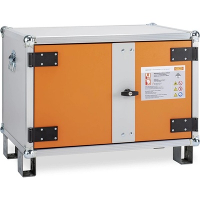 Skladovací a nabíjecí bezpečnostní skříň pro skladování a nabíjení Li-Ion a jiných AKU článků LockEX s patkami pro paletový vozík. Skříň je testovaná MPA na požární odolnost z...