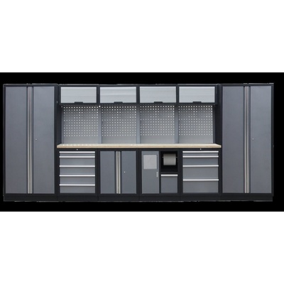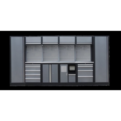 Sestava nábytku TGS1301AY Dílenský nábytek PROFI GREY s nerezovou deskou zaujme moderním a profesionálním vzhledem. Kombinace kladívkové šedé a černé RAL 9004 barvy se...