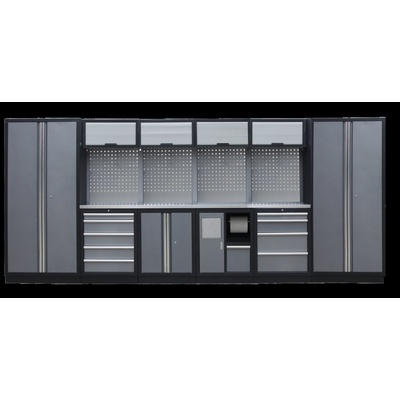 Sestava nábytku TGS1301AQ Dílenský nábytek PROFI GREY s nerezovou deskou zaujme moderním a profesionálním vzhledem. Kombinace kladívkové šedé a černé RAL 9004 barvy se...