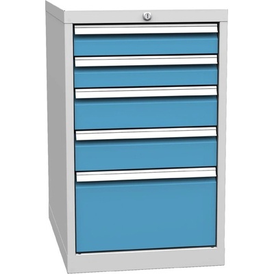 Pětizásuvkový kontejner pracovního stolu, šířka 500, výška 810, hloubka 700 mm. 2x zásuvka 90, 2x 120, 1x 240 mm. Barva korpusu RAL 7035 světle šedá. Skladem v barvě korpusu...