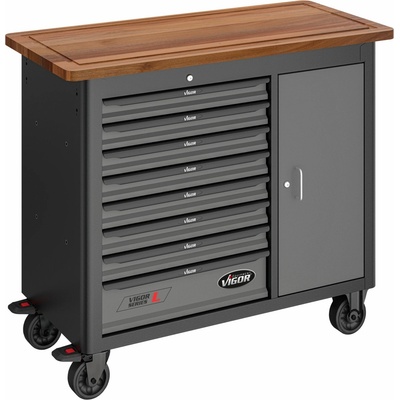 PROFI dílenský vozík s 8 uzamykatelnými zásuvkami a úložným prostorem s dvířky. Dílenský vozík je celokovový a má dřevěnou pracovní desku o rozměrech 1210 x 520 mm. Vozík má...
