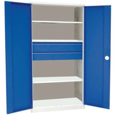 Dílenské skříně se dvěma policemi a dvěma zásuvkami jsou vyrobeny z ocelového plechu, tl.1 mm.Zadní část kovových skříní i dveře jsou opatřeny perforovanými panely pro uchycení...