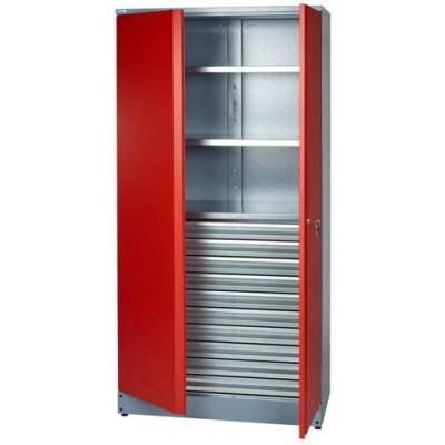 Dílenská skříň vhodná pro uložení pracovních nástrojů a pomůcek. Skříň je vybavena třemi výškově stavitelnými policemi a dvěma zásuvkami. Police i zásuvky jsou přestavitelné v...