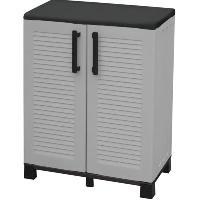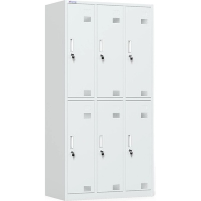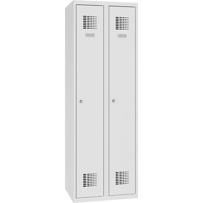 Dvoudveřová šatní skříňka svařovaná s moderním designem ventilačního systému. Výška 1800 x šířka 600 x hloubka 500 mm. Cylindrický zámek. Vybavení obou oddělení: tyč s dvěma...