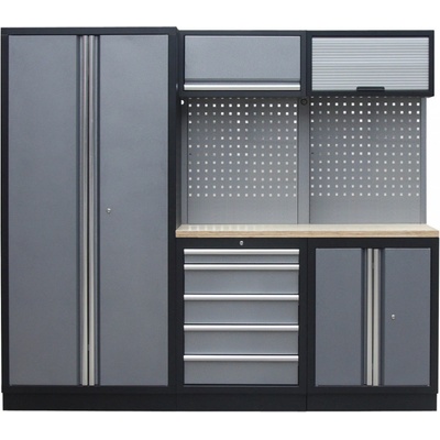 Sestava nábytku TGS1301BAL01 Dílenský nábytek PROFI GREY s dřevěnou deskou zaujme moderním a profesionálním vzhledem. Kombinace kladívkové šedé a černé RAL 9004 se...