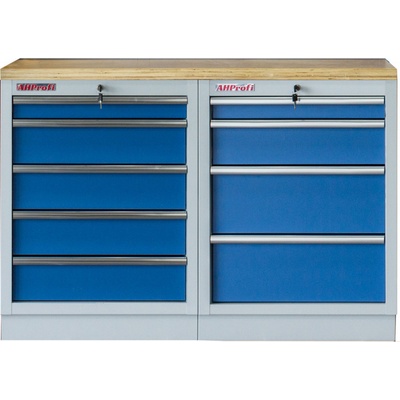 Sestava nábytku MTGS1300BAL09 Dílenský nábytek PROFI BLUE s dřevěnou deskou zaujme moderním a profesionálním vzhledem. Kombinace modré RAL 5023 a šedé RAL 7035 barvy se bude...
