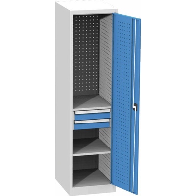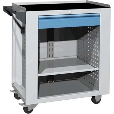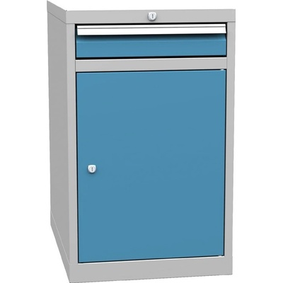 Jednozásuvkový kontejner pracovního stolu s dveřmi, šířka 500, výška 810, hloubka 700 mm. 1x zásuvka 90 mm, 1x police. Součástí výrobku je perfopanel pro držáky nářadí. Barva...