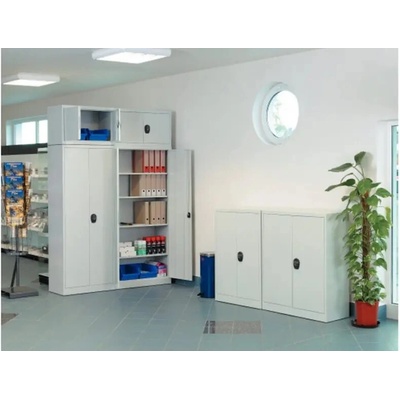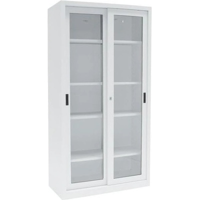Svařované skříně se čtyřmi výškově přestavitelnými policemi. Vyrobeny z ocelového plechu tl. 0,9 mm. Posuvné dveře s průhledy z plexiskla šetří místo a umožňují okamžitý přehled...