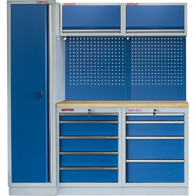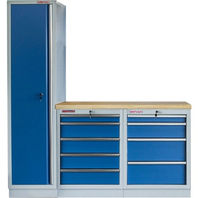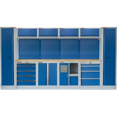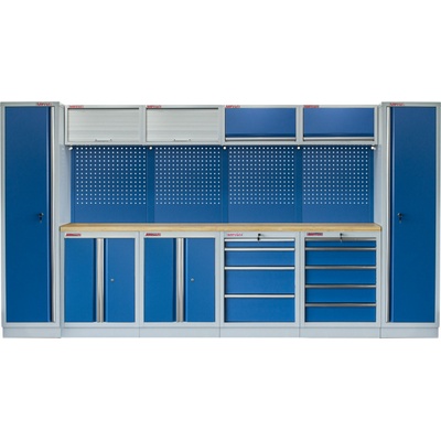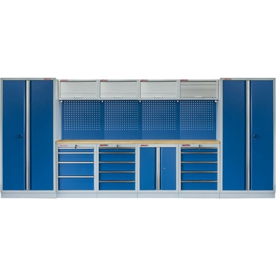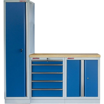 Sestava nábytku MTGS1300AI Dílenský nábytek PROFI BLUE s dřevěnou deskou zaujme moderním a profesionálním vzhledem. Kombinace modré RAL 5023 a šedé RAL 7035 barvy se bude...