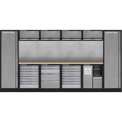 Sestava nábytku TGS1300A9 Dílenský nábytek PROFI GREY s dřevěnou deskou zaujme moderním a profesionálním vzhledem. Kombinace kladívkové šedé a černé RAL 9004 se bude...