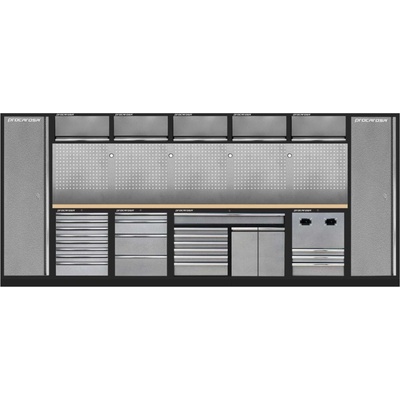 Sestava nábytku TGS1300AA3 Dílenský nábytek PROFI GREY s dřevěnou deskou zaujme moderním a profesionálním vzhledem. Kombinace kladívkové šedé a černé RAL 9004 se...