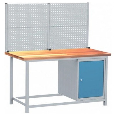 Kompletní dílenské pracoviště je složeno z kontejneru, pracovní desky, perforovaného panelu na nářadí a závěsné skříňky. Povrch kovových částí pracovního stolu je upraven práškovou barvou. Vhodný pro dílenské či servisní prostory.